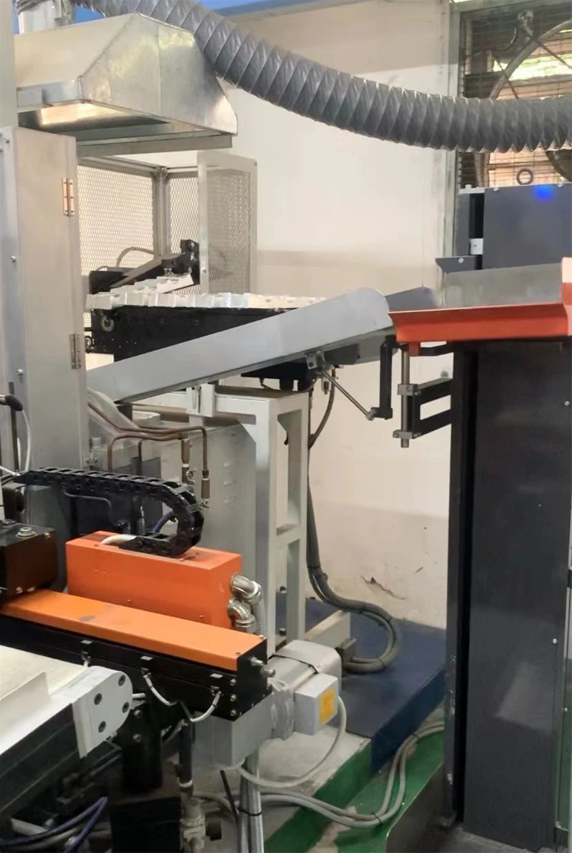 鋅合金自動化熱室壓鑄生產(chǎn)線(右圖為自動加料系統(tǒng)) 唐忠康先生表示,我選擇設(shè)備時會從綜合成本、長遠(yuǎn)投資的角度去全面考察,如:設(shè)備的耐用性、穩(wěn)定性、故障率,還有易損件的使用壽命等。菱沼壓鑄機在鎖模系統(tǒng)、射料系統(tǒng)、液壓系統(tǒng)及整機等方面都表現(xiàn)得非常優(yōu)秀。比如菱沼壓鑄機使用時限非常長,產(chǎn)品一致性、精密度非常高,故障率非常低,易損件比如錘頭鋼環(huán)使用壽命長達(dá)5-6個月。同時,設(shè)備的耐用性及穩(wěn)定性也是決定壓鑄件質(zhì)量的主要因素之一。