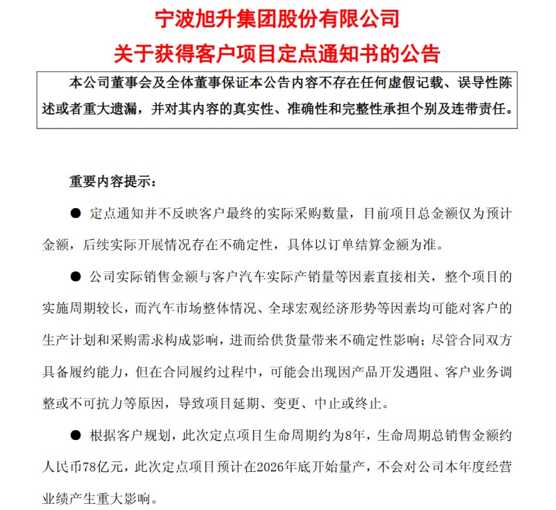 8年78億元!旭升集團獲北美客戶新能源汽車零部件項目定點
