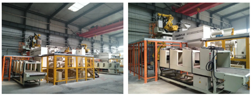 今年3月新增的兩套伊之密1250噸壓鑄島也配置了伊之密取件機器人系統、噴涂機器人系統、輸送帶、系統控制柜等自動化系統,目前已完成安裝,將用于生產哈東安汽車變速箱離合器。