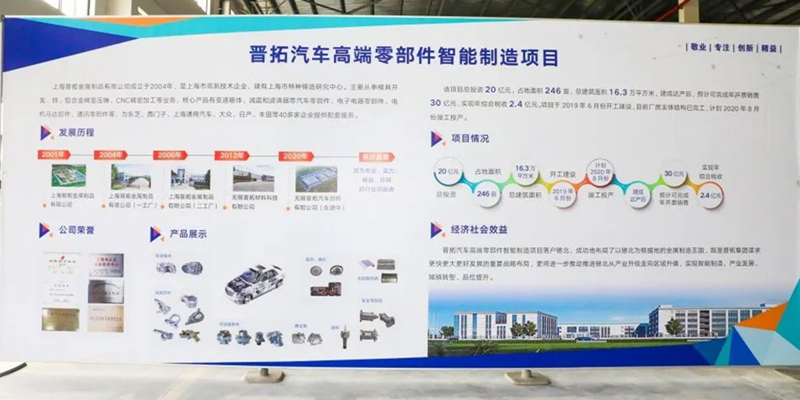 ![]() 近日,從江蘇無錫市錫山區(qū)獲悉,晉拓汽車高端零部件智能制造項目目前廠房主體已封頂,計劃8月份竣工投產(chǎn)。項目由上海晉拓金屬制品有限公司投資建設(shè)。