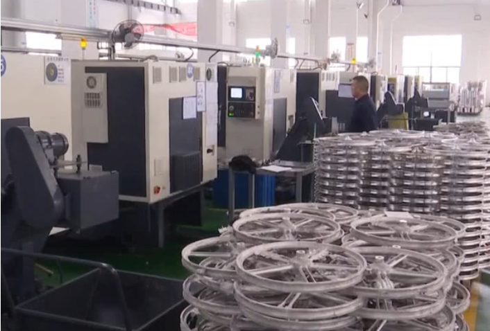 ![]() 壓鑄周刊(2020年11月18日 深圳)來自東臺廣電報道,日前,江蘇鑫晟發(fā)科技有限公司18臺壓鑄機(jī)和60組機(jī)加工設(shè)備正在運(yùn)行,生產(chǎn)從熔煉、鑄造、機(jī)加工、涂裝一氣呵成,碼放整齊的合金輪轂閃著銀光。企業(yè)當(dāng)天可有2萬只單車輪轂入庫。