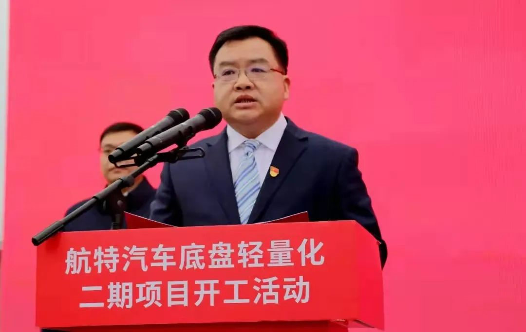 湖北航特公司總經理陳陽陵先生致辭 湖北航特公司總經理陳陽陵表示:“建設汽車底盤輕量化二期項目,既是航特公司打造亞太地區最大的汽車鋁合金輕量化底盤研發生產基地的重要舉措,也是公司五年內邁入‘百億企業’的重要起點。” 據介紹,為加快汽車輕量化底盤產業布局,滿足日益增長的市場訂單需求,湖北航特將借助上市契機,三年內投資50億元,建設年產配套500萬臺汽車輕量化底盤的現代工廠。