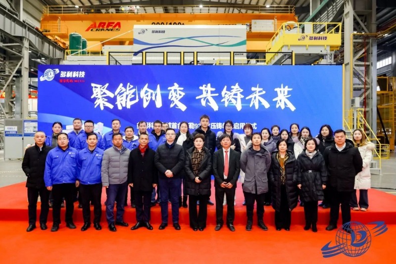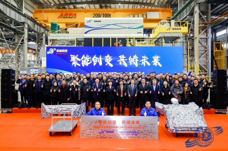 ![]() 瑞雪兆豐年!工廠外雪花飄飄,車間里熱鬧非凡。2023年12月18日下午,多利科技全球首臺布勒9200T壓鑄單元啟用儀式在多利鹽城工廠隆重舉行。這是繼6100T壓鑄單元之后,多利科技第二套超大型壓鑄單元正式投入生產。