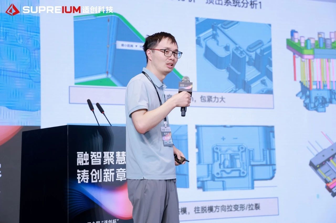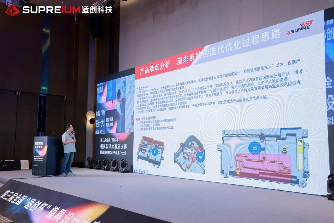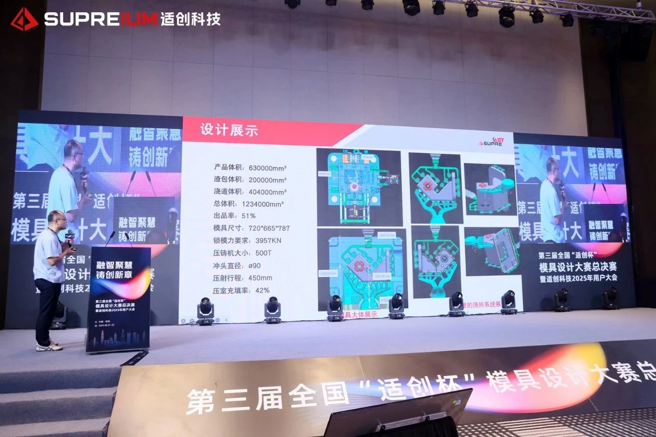 王珵教授團(tuán)隊(duì)專注先進(jìn)輕合金設(shè)計(jì)制備、精準(zhǔn)加工與改進(jìn)、新材料開(kāi)發(fā)與加工技術(shù)研究。基于團(tuán)隊(duì)研究成果,王教授與大家分享了其團(tuán)隊(duì)在《新型耐蝕高強(qiáng)鎂合金應(yīng)用與高效成型》方面的研究成果,闡述了新型高性能鎂合金對(duì)實(shí)現(xiàn)關(guān)鍵材料自主生產(chǎn),應(yīng)對(duì)行業(yè)輕量化重大需求的重要意義。 04 冠軍揭曉 選手們專業(yè)的設(shè)計(jì)作品和精彩的現(xiàn)場(chǎng)答辯,展現(xiàn)了行業(yè)人才的超高水準(zhǔn)。 經(jīng)過(guò)專家們的細(xì)致評(píng)審,最終,來(lái)自廣東文燦鑄造研究院有限公司、佛山市和陽(yáng)精密金屬制品有限公司的“凌云隊(duì)”和來(lái)自東莞鴻圖金屬壓鑄電器制造有限公司、梧州市鴻圖精密壓鑄有限公司的“模力四射隊(duì)”,在作品中展現(xiàn)了全面的設(shè)計(jì)能力,贏得了專家評(píng)審們的一致認(rèn)可,評(píng)分位列各自分組第一,分別榮獲大噸位組與小噸位組冠軍。 專家評(píng)語(yǔ) 大噸位組-凌云隊(duì) 通過(guò)多版方案的模擬對(duì)比,選取最優(yōu)解。產(chǎn)品填充行程最短,填充順暢,降低產(chǎn)品卷氣風(fēng)險(xiǎn)。末端擠壓銷的使用,有效改善產(chǎn)品內(nèi)部縮松縮孔。通過(guò)熱電偶的監(jiān)控,及時(shí)了解模具溫度變化,更有針對(duì)性的調(diào)節(jié)模溫平衡,提高產(chǎn)品生產(chǎn)穩(wěn)定性。 小噸位組-模力四射隊(duì) 產(chǎn)品的細(xì)節(jié)改善較詳細(xì),有利于后期的風(fēng)險(xiǎn)規(guī)避,模具緊湊,壓鑄機(jī)噸位小,經(jīng)濟(jì)性好。采用滑塊頂出,預(yù)防產(chǎn)品變形,保證產(chǎn)品尺寸精度,運(yùn)用抽真空排氣,有效保證產(chǎn)品卷氣風(fēng)險(xiǎn),提升產(chǎn)品質(zhì)量。