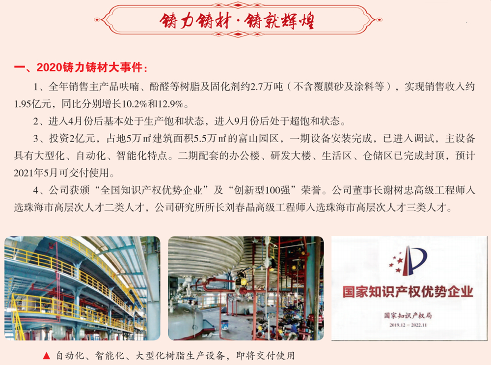 廣東省鑄力鑄材科技公司 鑄造樹脂材料等
