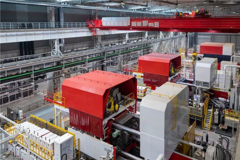 受訪鑄造專家告訴汽車商業評論,“按照特斯拉Model Y后車架面積計算,原本應該用8000噸或更大的壓鑄機。可能是受限于當時只能制造6000、7000噸級壓鑄機,其實有一點小馬拉大車,后面出了比較多鑄件問題,合格率比較低。特斯拉的風格是速度第一,條件不成熟也要做這個事情,有問題邊走邊改,這種快速推進,從市場角度出發,是對的,可以快速占領制高點。因為任何一件事在最開始都不要過分追求完美,那樣會失去市場先機,技術完美了,市場沒有了,這個技術也就沒用了。” 據了解,特斯拉的一體化壓鑄目前合格率還不夠高,“特斯拉一體式壓鑄合格率很低,隨著生產推進和生產熟練度提高,問題點的攻克,估計現在能提高到80%~90%,壓鑄的好處是不合格件和切邊費料都可以回爐,每融化一次有2%~3%的損耗。如果回爐率太高能耗也是一筆不小的開銷,用電太貴,一般熔化用天然氣,一噸鋁得100多立方天然氣,保溫用天然氣和電都有。” 一體化壓鑄技術必須配備金屬熔化爐,將原料鋁錠融化后供給壓鑄機。趙揚介紹,還有一種模式是產業鏈整合,跟鋁錠廠比鄰而建,直接運鋁水到壓鑄車間,但距離不能大于90公里。這樣可以節約較大的熔化成本,特斯拉工廠周圍沒有鋁廠,只能自己熔煉。 鋁錠熔化成鋁水后用活塞高壓將鋁水注入模具,類似打針,這個過程要涂料噴霧器、模溫機(為模具保溫)、機邊爐(為鋁水保溫)、取件機器、模具溫度監控設備、高真空抽氣設備等周邊設備配合。零件壓鑄后由傳送帶輸送零件,要進行澆冒口去除,飛邊打磨后處理,還需進行無損探傷檢測,像是給人體拍X光片,探測內部空洞情況。
