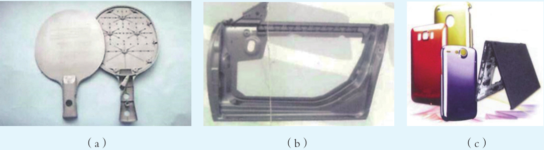這批企業(yè)的 主要特點如下: 四、內(nèi)地港資企業(yè)的騰飛 得益于國家改革開放的政策扶持和香港地區(qū)人民奮斗不息、進(jìn)取不止的精神傳承,進(jìn)入21世紀(jì),許多內(nèi)地港資和中港合資壓鑄企業(yè)已轉(zhuǎn)型升級為集產(chǎn)品設(shè)計、科研開發(fā)、模具開發(fā)、原設(shè)備生產(chǎn)、原設(shè)計生產(chǎn)、原品牌生產(chǎn)、市場營銷于一體的大型現(xiàn)代企業(yè),在科研、產(chǎn)品、市場等方面碩果累累。 (一)首創(chuàng)的輕量化壓鑄產(chǎn)品豐富多彩 新一代稀土壓鑄材料的開發(fā),使壓鑄出 0.3mm超薄壁鑄件成為可能,這種鑄件可廣泛應(yīng)用在當(dāng)今新一代 4C產(chǎn)品上,從而影響、推動 4C產(chǎn)品的設(shè)計。順景園精密鑄造(深圳)有限公司研發(fā)突破鋁合金最薄壁厚極限 0.5mm的鋁合金乒乓球拍壓鑄件,宜安(香港)有限公司國內(nèi)首創(chuàng)鎂合金轎車門壓鑄件;嘉瑞集團(tuán)有限公司研發(fā)出 0.45mm的鎂合金壓鑄筆記本外殼和 0.38mm的鋅合金壓鑄手機(jī)外殼,見圖3(a)(b)(c)