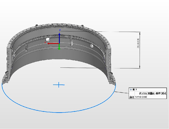 輔助劃線,精準加工 方案中使用便攜式CMM測量光筆T-Probe進行輔助劃線,光筆適配多種不同長度的測針,單點重復性達0.03mm,結合動態跟蹤儀,能快速進行基準劃線,以及在需要加工位置的窗口劃線并檢查劃線是否準確。 還可以通過軟件進行虛擬劃線,提前檢測劃線位置是否準確,精確指導后續劃線和加工過程,最大程度保證劃線效率,縮短制造周期。