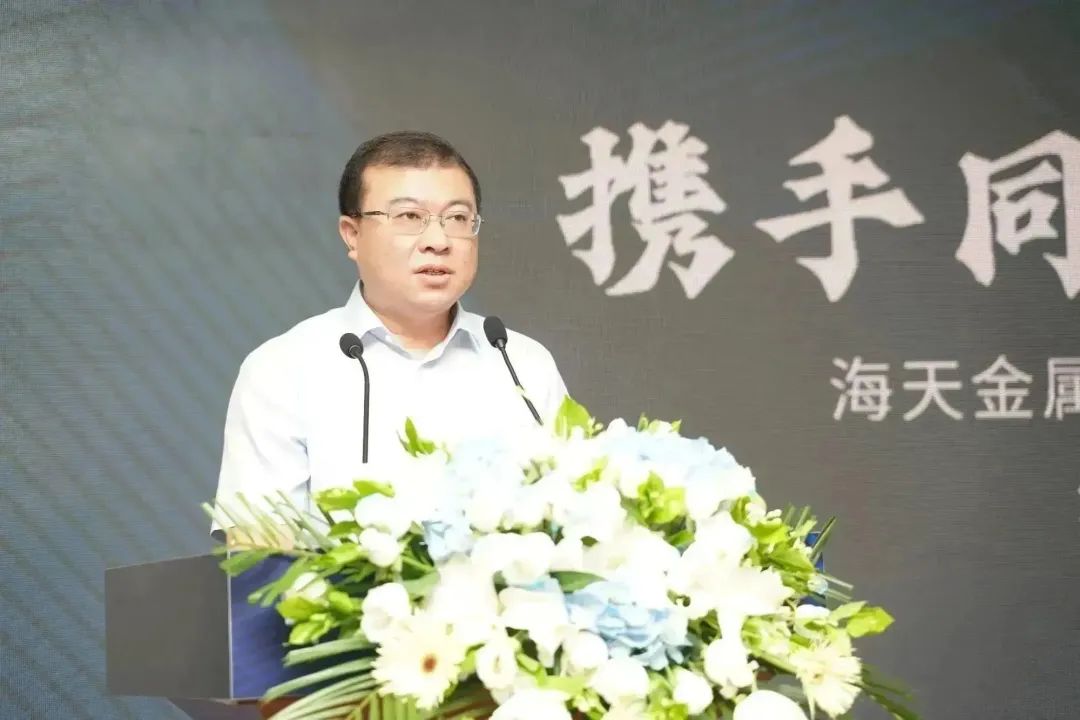 海天金屬總經理 樂曉東 開業慶典上,海天金屬總經理樂曉東致辭,海天金屬(含山)應用服務中心的落成具有重要意義,海天金屬將借此東風,乘風破浪,駛入高速發展的快車道,為公司持續發展注入新動能。