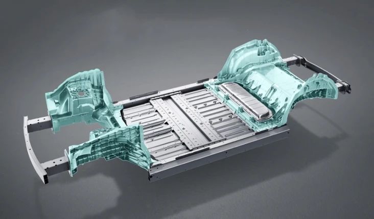 一體化壓鑄后地板、前機艙應用。圖片來自小鵬汽車 更大的壓鑄單元,更大的壓鑄件。超大型壓鑄單元,讓大型一體化、集成化壓鑄件成為可能,并成功制造出一體化壓鑄后地板、一體化前機艙、一體化電池托盤/包、一體化副車架,以及諸如縱梁、橫梁、減震塔……結構件。而這些大型一體化的底盤件/結構件,已逐一成功應用于新能源汽車。大型一體化壓鑄(Giga-Cast),引發造車(新能源汽車)方式的新一輪革命。
