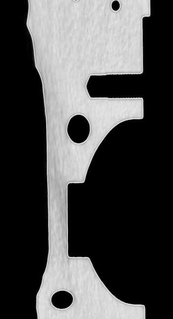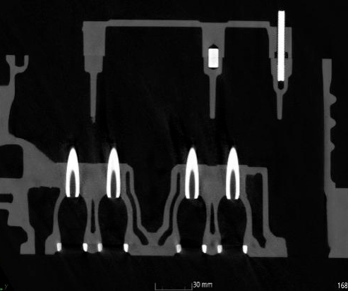 ![]() CT偽影始終是制約分析、數據處理、可靠性以及準確度的重大難題。毋庸置疑,偽影的種類繁多,像是射線硬化、多材料、散射或者環狀等均在其列。今日,要與諸位分享的乃是鋁壓鑄行業里最為常見的散射偽影。即便是單一材料的鋁壓鑄產品,通常也難逃散射偽影的影響。特別是在新能源汽車的零部件產品中,當壓鑄件的結構與尺寸愈發增大之際,散射偽影給工藝改進、分析以及量產檢測造成諸多困擾;而且工作人員有時還會誤將這一偽影視作是射線硬化所導致。 散射和射線硬化偽影的區別: 射線硬化是由于射線無法穿透被測物所導致的一種偽影,原本應是線性變化的灰度值發生了混亂所導致的。 X射線光子具有不同的能量范圍,例如自30至230keV 。如光子沿穿透方向能量衰減不同,則比爾-朗伯定律基于測量X射線強度將不足以確定穿透長度。