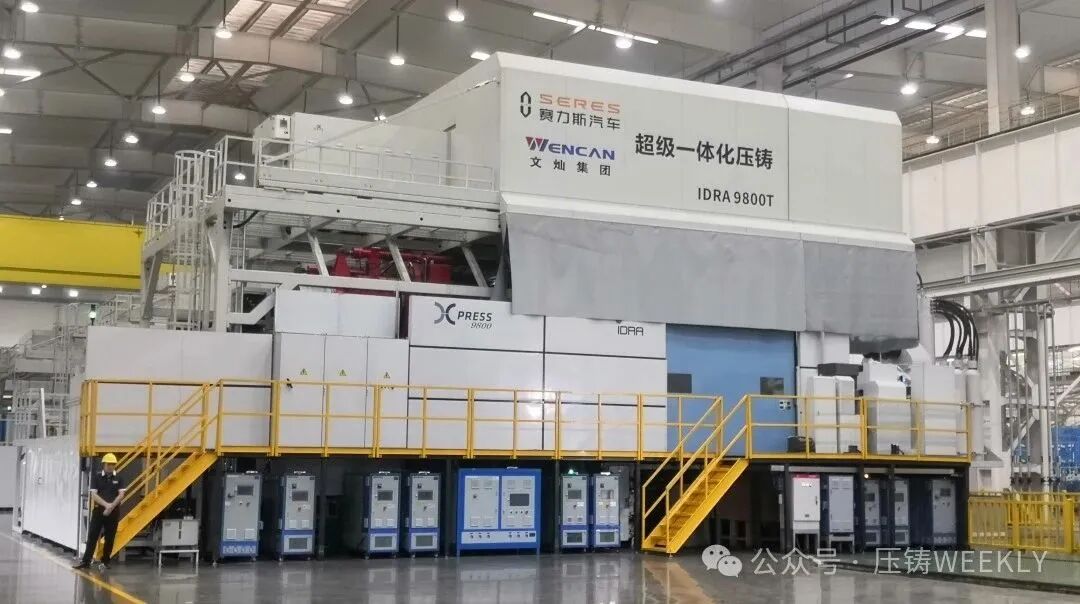 作為賽力斯技術(shù)實(shí)力的核心載體,問(wèn)界品牌已構(gòu)建起差異化的制造技術(shù)壁壘。在車身工藝領(lǐng)域,問(wèn)界汽車超級(jí)工廠,配置了7000噸、9000噸、9800噸等型號(hào)的超大型壓鑄島,生產(chǎn)前機(jī)艙、后車體、CD柱等一體化壓鑄件。其中,一體化壓鑄后車體將傳統(tǒng)工藝中分散的87個(gè)零件集成為單一結(jié)構(gòu)零部件,減少820個(gè)連接點(diǎn)的同時(shí)實(shí)現(xiàn)28%的減重效果 。這一技術(shù)已在問(wèn)界M9、M8等車型量產(chǎn)落地。