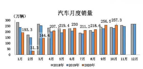 ![]() 昨日(11月11日),中國汽車工業(yè)協(xié)會信息發(fā)布會在北京召開。2020年10月,我國汽車產(chǎn)銷分別完成255.2萬輛和257.3萬輛,環(huán)比分別增長0.9%和0.1%,同比分別增長11%和12.5%。截至本月,汽車產(chǎn)銷已連續(xù)7個月呈現(xiàn)增長,其中銷量已連續(xù)六個月增速保持在10%以上。 10月,擴大內(nèi)需戰(zhàn)略以及各項促進(jìn)消費政策持續(xù)發(fā)力,國內(nèi)統(tǒng)籌推進(jìn)疫情防控和經(jīng)濟社會發(fā)展工作成效明顯。市場需求繼續(xù)恢復(fù),產(chǎn)業(yè)循環(huán)持續(xù)改善,企業(yè)利潤穩(wěn)步回升,就業(yè)形勢總體穩(wěn)定,消費市場持續(xù)穩(wěn)定復(fù)蘇,疊加國慶和中秋雙節(jié)效應(yīng),汽車市場需求不減,產(chǎn)銷形勢總體向好,同比繼續(xù)保持增長勢頭。從產(chǎn)銷量同比看,當(dāng)月汽車產(chǎn)銷繼續(xù)呈現(xiàn)兩位數(shù)增長,累計汽車產(chǎn)銷降幅已收窄至5%以內(nèi)。 1-10月,汽車產(chǎn)銷分別完成1951.9萬輛和1969.9萬輛,同比分別下降4.6%和4.7%,降幅較1-9月分別繼續(xù)收窄2.1和2.2個百分點。