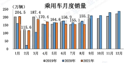 乘用車單月產(chǎn)銷同比降幅擴(kuò)大 8月,乘用車產(chǎn)銷分別完成149.7萬輛和155.2萬輛,同比分別下降11.9%和11.7%。1-8月,乘用車產(chǎn)銷分別完成1289.1萬輛和1311.2萬輛,同比分別增長15.2%和16%。