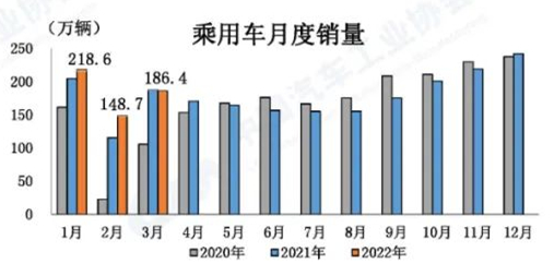 乘用車產(chǎn)銷同比略有下降 3月,乘用車產(chǎn)銷分別完成188.1萬輛和186.4萬輛,環(huán)比分別增長22.4%和25.1%,同比分別下降0.1%和0.6%,與上月相比,均由增轉(zhuǎn)降。1-3月,乘用車產(chǎn)銷分別完成549.9萬輛和554.5萬輛,同比分別增長11%和9%。