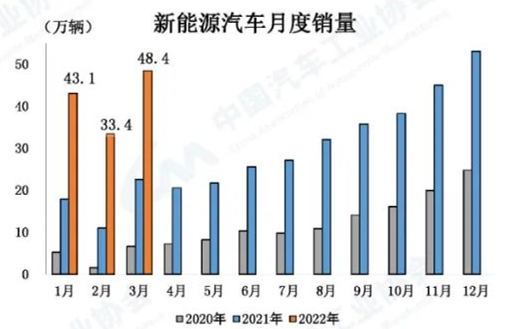 新能源汽車同比繼續(xù)保持高速增長 3月,新能源汽車產(chǎn)銷分別完成46.5萬輛和48.4萬輛,同比均增長1.1倍。1-3月,新能源汽車產(chǎn)銷分別完成129.3萬輛和125.7萬輛,同比均增長1.4倍。