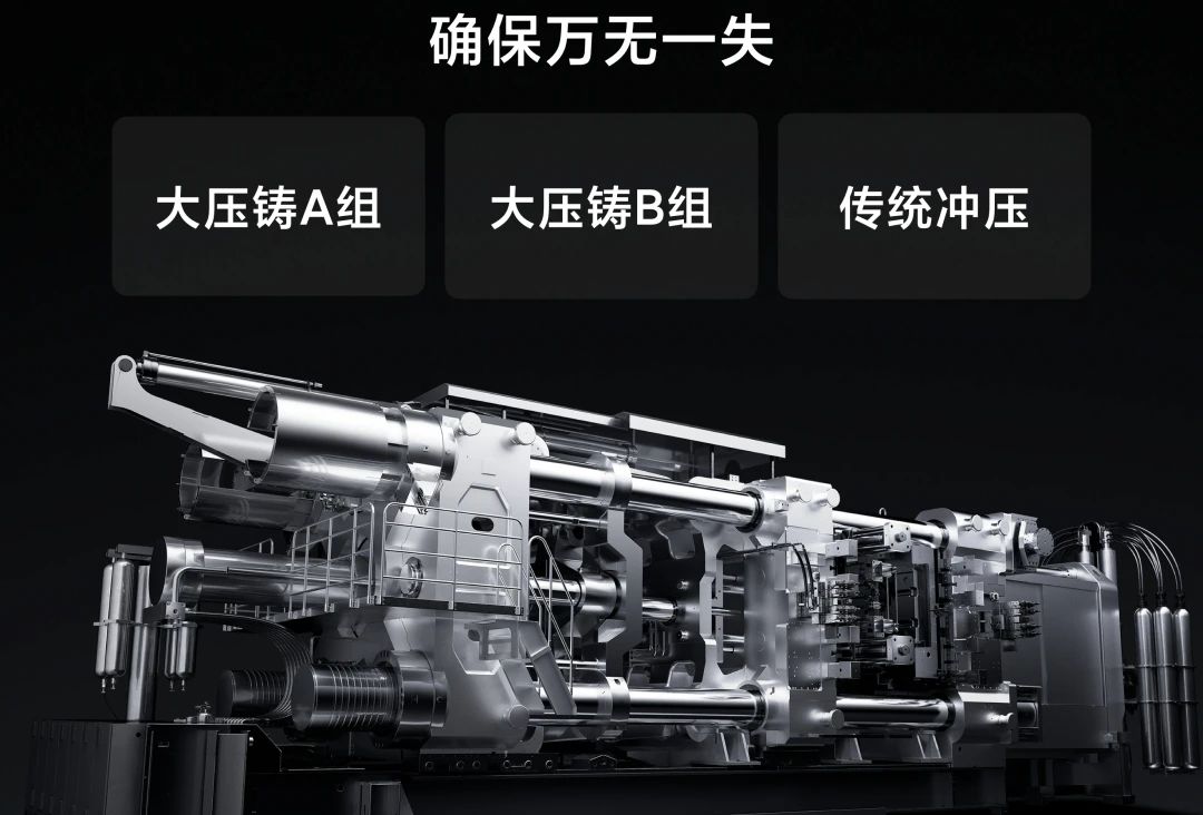 據介紹,為了確保萬無一失,小米汽車團隊一次性定制了三套壓鑄機,大壓鑄AB組,再加一套傳統(tǒng)沖壓方案,三套同時做,最終,小米超級大壓鑄順利完成。