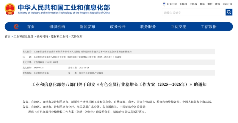 該方案明確提出2025 - 2026年有色金屬行業發展目標及系列政策舉措。