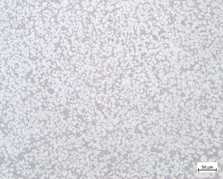 壓鑄扁試樣斷口形貌 斷口微觀組織為細小韌窩組織,無明顯的脆性相,且無明顯夾渣和嚴重氣孔,故JY-1合金具有較高的韌性。 2、金相顯微鏡組織形貌: