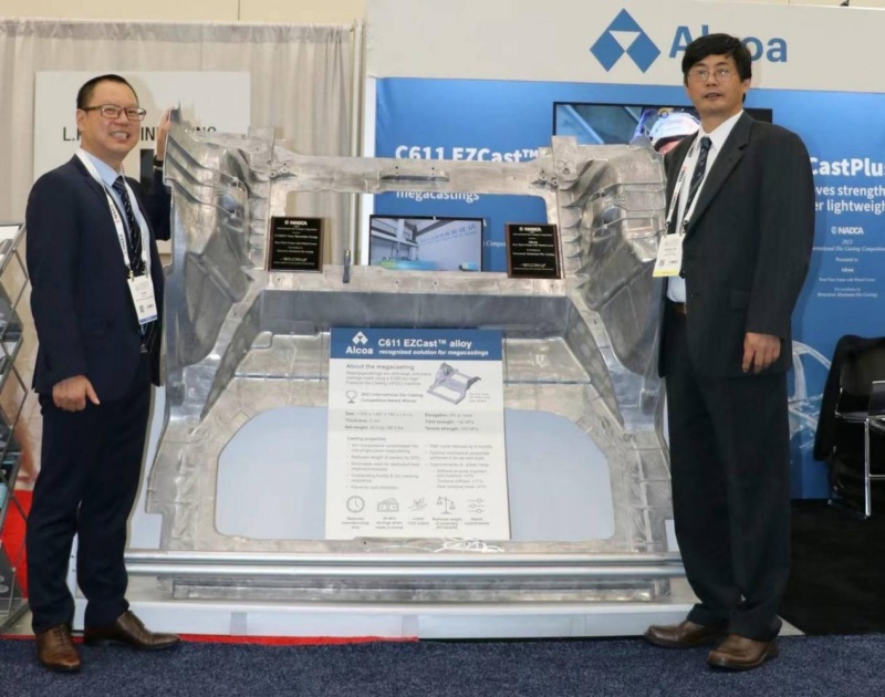 ![]() 帥翼馳/美鋁聯合推出 高性能免熱處理鋁合金C611TM材料 助力賽力斯汽車一體化壓鑄件 贏得壓鑄界奧斯卡獎 2023年9月19日至21日,一年一度的北美壓鑄協會(NADCA)年會在美國密歇根州大激流城(Grand Rapids, MI)隆重召開,帥翼馳新材料集團董事長程帥率團參加。 本次盛會共有全球100家壓鑄行業頭部企業參加,展示了最新的技術、產品和服務;同期舉行的北美壓鑄協會學術年會,包含共9個議題,涵括了模具鑲塊的3D打印增材制造、計算機仿真模擬、先進壓鑄鋁合金材料、壓鑄件的機械性能、模具壽命提升、數據驅動的工藝優化等重要領域的最新研究成果。