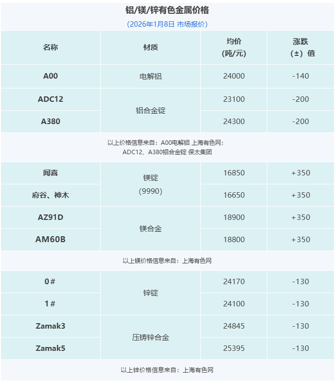 晉拓股份墨西哥壓鑄工廠啟動(dòng)試生產(chǎn);寶武鎂業(yè):聯(lián)營(yíng)公司安徽寶鎂新建項(xiàng)目處于投產(chǎn)爬坡階段;隆源股份2025年?duì)I收增長(zhǎng)18.05%;怡球資源2025年預(yù)計(jì)凈利最高至1.99億元。