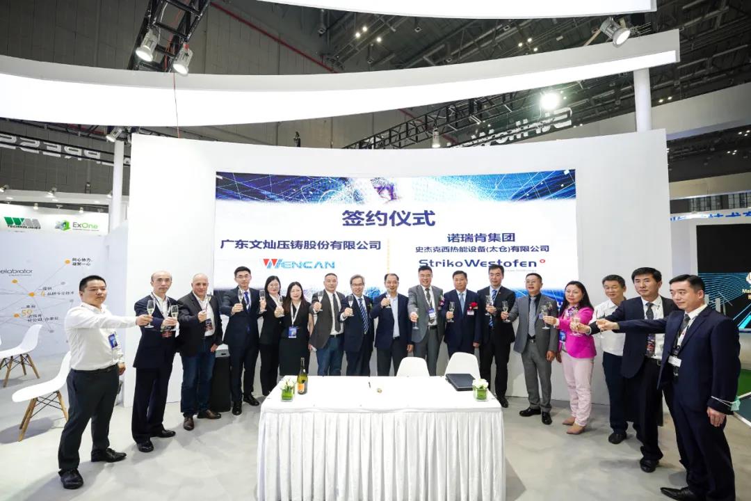 ![]() 文燦股份采購5臺史杰克西定量爐 昨日(2021年5月26日)上午,第十五屆中國壓鑄工業展覽會首日,史杰克西熱能設備(太倉)有限公司展臺,廣東文燦股份有限公司與諾瑞肯集團及旗下品牌史杰克西熱能設備(太倉)有限公司成功簽定了戰略合作協議。根據協議,文燦集團將采購5臺史杰克西Westomat定量保溫爐。據了解,新設備將配套文燦股份當日剛簽下的大型壓鑄機,用于文燦股份的華東工廠。