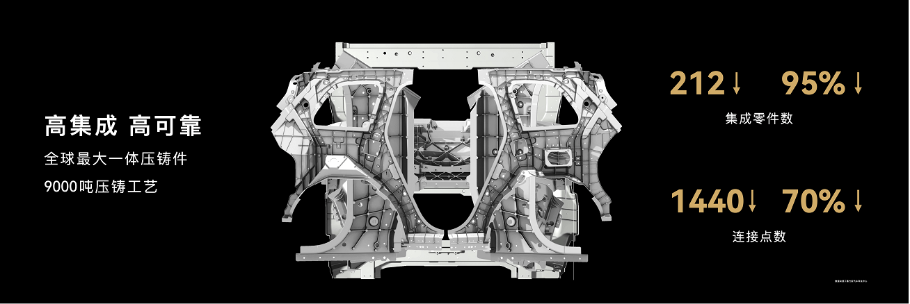 據介紹,9000T壓鑄島一體化壓鑄工藝作為賽力斯汽車智能制造的核心技術之一,能有效實現高效生產、輕量化、高安全性和降低成本。高度集成化的一體式壓鑄設計,可大量減少零部件及零部件之間的連接,提高車身的整體剛度和強度,提升車身的安全性能。 |