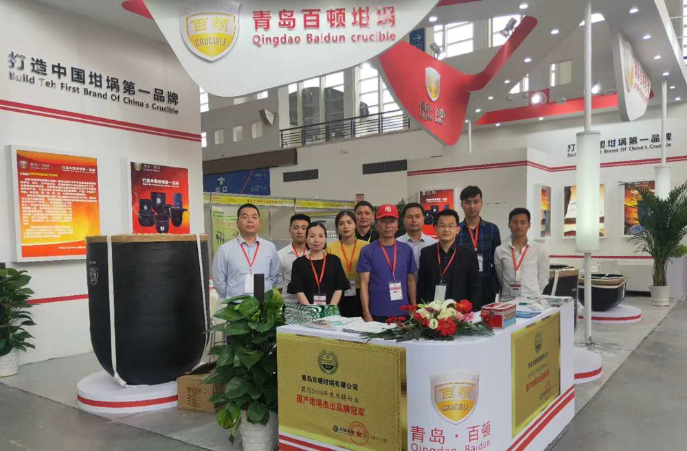 ![]() 青島百頓參展團隊 在青島百頓的展臺,細心的專業觀眾會發現,代表公司參展的為其另一家子公司——青島百頓特種陶瓷技術有限公司(“百頓特種陶瓷”)。青島百頓市場總監孫建先生向記者介紹,青島百頓原母體——青島百頓坩堝有限公司仍保留,百頓特種陶瓷注冊成立于2014年12月,注冊資本1億元。 在本屆展會上,青島百頓展示了三款石墨碳化硅坩堝,分別為型號為B型坩堝5000、帶嘴坩堝Z1800、橢圓形坩堝Y1560。百頓坩堝是我國碳化硅石墨坩堝大型廠家之一,擁有多臺冷等靜壓機及國內最大缸徑(φ2000mm)的成型裝備,采用優質的原材料及科學先進的配方。公司坩堝產品以抗氧化、傳導熱快、使用壽命長著稱,優質的產品廣受用戶青睞。