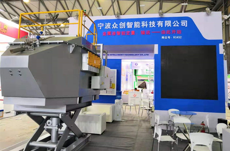寧波眾創現場展示鋁合金定量爐 近日閉幕的“CHINA DIECASTING 2019中國壓鑄展”上,寧波眾創再次展示其鋁合金定量爐,向來自全國各地的專業觀眾和買家推介其高質量鋁液定量給料解決方案。 “眾創鋁合金定量爐,可以提供清潔、溫度均勻的鋁液,快速、精準定量,”寧波眾創市場總監孫繼文先生介紹說:“該鋁合金定量爐,經過優化后的易損件,讓用戶使用成本降低60%;全電動傾轉平臺,操作便捷、安全可靠;傾轉角度精準至1度,有效控制出鋁量及其流速。” 據介紹,眾創定量爐工作流程為:定量爐待機等待壓鑄機信號;壓鑄機鎖模開始,定量爐加壓預升液面至探針下方的上止點;壓鑄機鎖模到位,定量爐增壓定量澆注鋁水;定量爐澆注結束,壓鑄機壓射,定量爐返回待機狀態。如此往復,為每一模次的壓鑄生產供應鋁液。