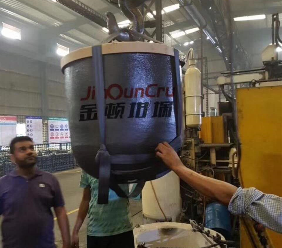 高品質坩堝在用戶工廠應用 王子君補充說:“客戶采購的這批產品,為碳化硅石墨帶嘴坩堝,容量為300kg,由于軍工產品對坩堝性能要求較高,因此,我們的技術人員在原料上開發出獨特配方,全面提升產品的導熱、抗腐蝕、耐用性等性能,較好地用于軍工產品的澆鑄、壓鑄生產。”