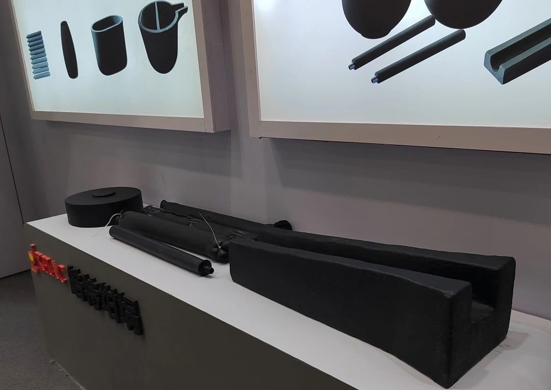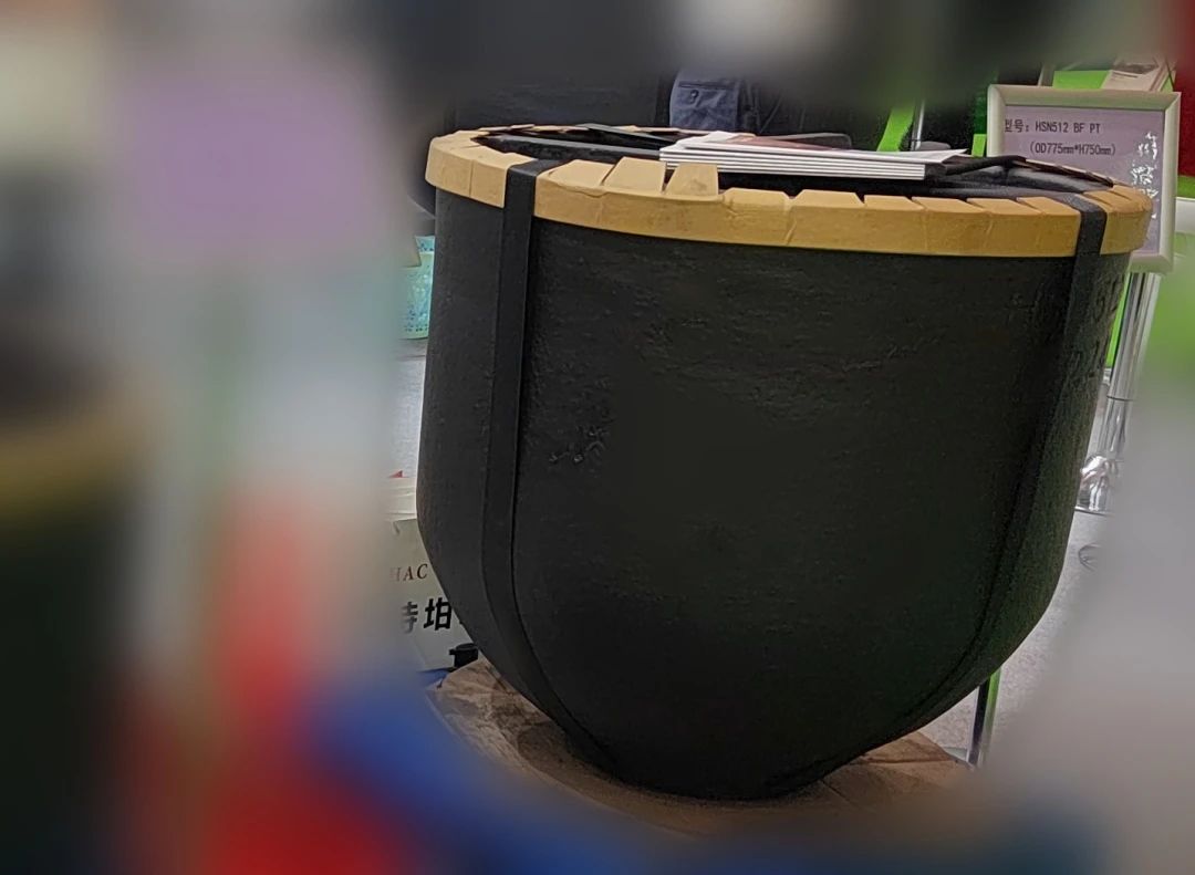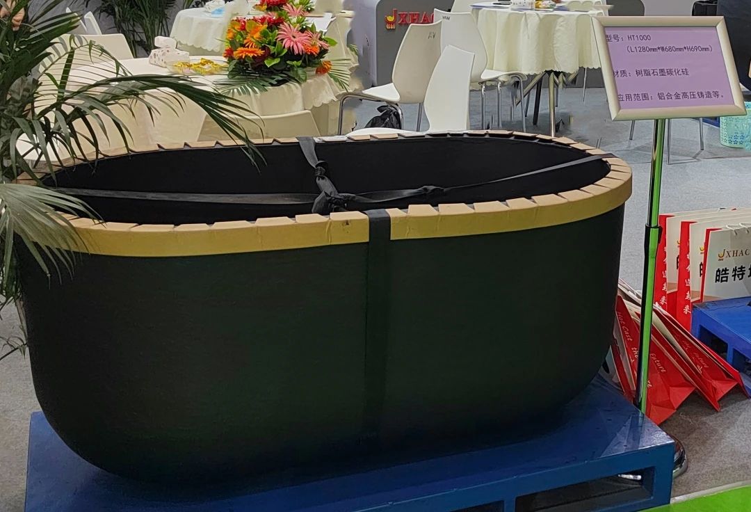 HT1000 樹脂石墨碳化硅坩堝 另外,本次展會上,嘉興皓特還展出了帶測溫孔的HSN512帶嘴坩堝、貴金屬熔煉的HC700X385熔銅坩堝,以及坩堝底座HS360X50、流槽HL700X255、熱電偶保護套管HPS50500等應用有色金屬熔煉的各類耗材產品。