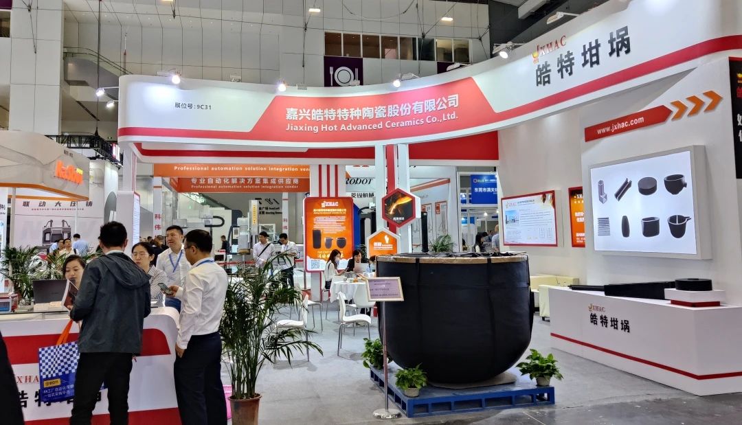 ![]() 嘉興皓特參展主要成員 2023年11月27-30日,2023 DMP大灣區(qū)工博會(huì)暨國(guó)際(深圳)鑄業(yè)展,在深圳國(guó)際博覽中心隆重舉行。在壓鑄及鑄造館,160余家產(chǎn)業(yè)鏈上下游知名企業(yè)現(xiàn)場(chǎng)展示創(chuàng)新產(chǎn)品、技術(shù)、應(yīng)用及解決方案。 皓特特大型坩堝助力大型鑄件持續(xù)生產(chǎn) 本屆展會(huì),嘉興皓特特種陶瓷股份有限公司(簡(jiǎn)稱(chēng):嘉興皓特)攜多款黏土石墨碳化硅坩堝參展,為華南地區(qū)專(zhuān)業(yè)觀眾展示皓特在壓鑄、有色金屬冶煉、貴金屬熔煉全方面的解決方案。 此次,嘉興皓特現(xiàn)場(chǎng)展示的一款超大型坩堝是本屆展會(huì)的亮點(diǎn)之一。據(jù)介紹,該坩堝為皓特HU1525 H1200 黏土石墨碳化硅坩堝,其高度1200mm、外口徑1525mm、容鋁量3.5噸。此超大型坩堝為嘉興皓特多年技術(shù)沉淀而開(kāi)發(fā)的產(chǎn)品。順應(yīng)汽車(chē)零部件大型化、一體化鋁鑄造的趨勢(shì),大型鑄件的連續(xù)生產(chǎn),需要更大的坩堝作為鋁液載體來(lái)實(shí)現(xiàn)。這款大容量坩堝能為鑄件生產(chǎn)提供持續(xù)的高品質(zhì)的鋁液,不僅使用壽命長(zhǎng),還能提升產(chǎn)品良品率。該款坩堝主要應(yīng)用于重力鑄造、低壓鑄造、高壓鑄造等工藝生產(chǎn)的汽車(chē)零部件領(lǐng)域。