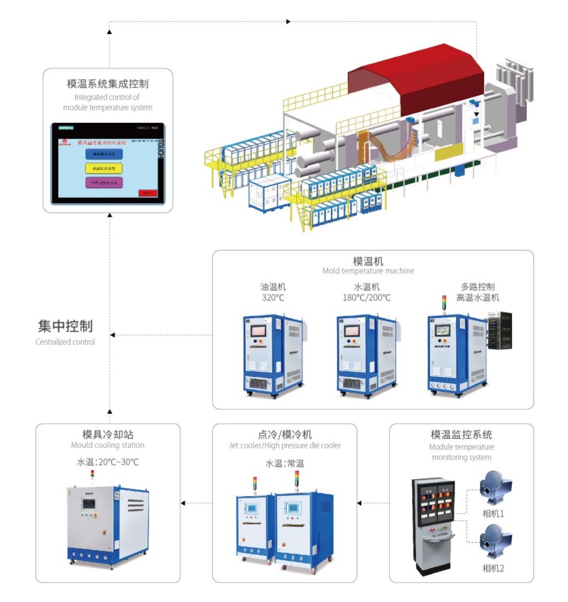 在引領(lǐng)汽車輕量化革命的前沿陣地,大型汽車結(jié)構(gòu)件一體壓鑄對(duì)溫度控制的要求近乎苛刻。奧德高端裝備為此提供了貫穿模具預(yù)熱、壓鑄過(guò)程控溫、部件快速冷卻等全流程的智能溫控中樞解決方案。其獨(dú)創(chuàng)的系統(tǒng)高度集成了200℃高溫水溫機(jī)、320℃極限油溫機(jī)、高效冷熱溫控站等尖端設(shè)備,成功攻克了從6000噸直至全球最大16000噸級(jí)巨型壓鑄模具的溫度均勻性平衡與毫厘級(jí)精準(zhǔn)控制這一世界級(jí)難題。目前,奧德與眾多主機(jī)廠及車企合作,包括華為、蔚來(lái)、小鵬汽車、一汽等在內(nèi)的國(guó)內(nèi)頭部車企,LK、YUZUMI、BUHLER等在內(nèi)的主機(jī)廠。有力推動(dòng)著汽車輕量化制造邁入高效率、高品質(zhì)、低能耗的新紀(jì)元。 在溫度敏感度極高的化工與制藥生命線領(lǐng)域,奧德高端裝備構(gòu)建起覆蓋全產(chǎn)業(yè)鏈的強(qiáng)大溫控護(hù)城河。其精心打造的“制藥化學(xué)高低溫解決方案”與“石油化工溫控解決方案”,已深度滲透至石油煉化、現(xiàn)代煤化工、生物制藥、精細(xì)化工等從研發(fā)到量產(chǎn)的關(guān)鍵環(huán)節(jié)。為齊魯制藥、浙江醫(yī)藥等龍頭企業(yè)提供從原料合成反應(yīng)、中間體控溫到產(chǎn)品純化結(jié)晶的全過(guò)程、高可靠溫度保障,奧德高端裝備已成為化工醫(yī)藥產(chǎn)業(yè)實(shí)現(xiàn)提質(zhì)增效、安全生產(chǎn)與合規(guī)達(dá)標(biāo)的不可或缺的核心基礎(chǔ)設(shè)施。 面對(duì)戰(zhàn)略新興產(chǎn)業(yè)材料的爆發(fā)式需求,鋰電池隔膜、光伏膠膜、風(fēng)電葉片復(fù)合材料等長(zhǎng)期存在的“卡脖子”量產(chǎn)瓶頸(如厚度均勻性、固化效率等),正被奧德高端裝備以非凡的技術(shù)穿透力逐一突破。其高性能溫控設(shè)備,如超高精度雙螺桿擠出控溫系統(tǒng)、大型模具分區(qū)控溫系統(tǒng),成為解決這些關(guān)鍵材料量產(chǎn)障礙的核心支撐,穩(wěn)定服務(wù)于恩捷股份、星源材質(zhì)等產(chǎn)業(yè)鏈龍頭企業(yè),顯著助力其提升良率、降低成本。 不僅如此,奧德高端裝備的溫控能力矩陣已廣泛覆蓋至更多前沿領(lǐng)域:從汽車發(fā)動(dòng)機(jī)缸體、變速箱等關(guān)鍵部件的高精度檢測(cè)環(huán)境模擬,到動(dòng)力電池PACK、儲(chǔ)能集裝箱系統(tǒng)及換電站的熱管理保障,再到半導(dǎo)體制造工藝(如光刻膠涂布、蝕刻)的精密控溫,甚至延伸至航空煤油特性測(cè)試等特種領(lǐng)域。這種難以復(fù)制的、高度場(chǎng)景化、深度定制化的綜合解決能力,使奧德高端裝備成為高端制造業(yè)名副其實(shí)的“溫度中樞”。