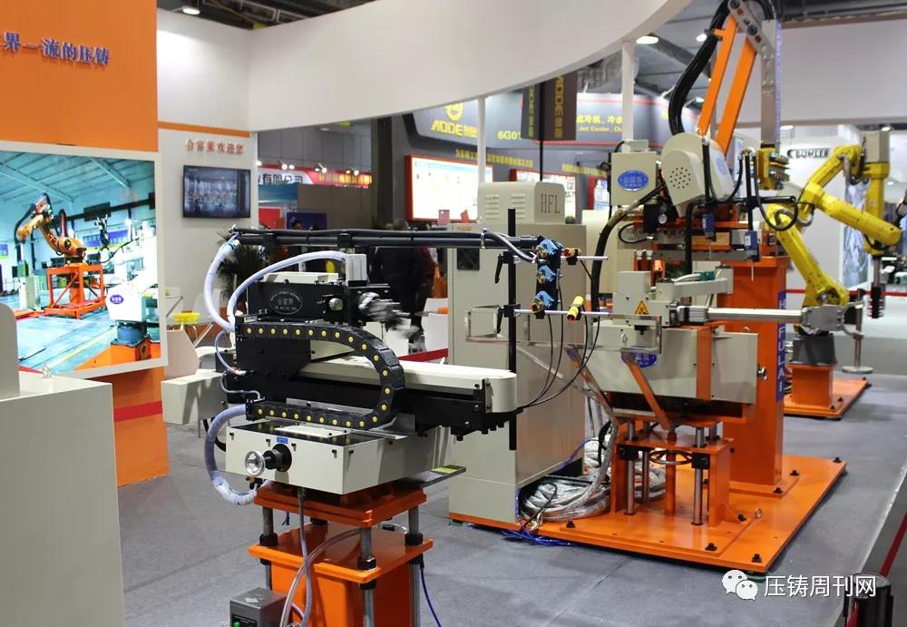 合富萊壓鑄機(jī)械手及壓鑄島自動(dòng)化產(chǎn)品 東莞合富萊此次展示多款技術(shù)先進(jìn)的壓鑄自動(dòng)化周邊設(shè)備,包括五連桿式高速給湯機(jī)(HFLLD-2#)、連桿式單伺服沃鈴噴霧機(jī)(HFLRADMW-2#)、連桿式伺服取出機(jī)(HFLEADM-2#)、熱室伺服噴取一體機(jī)(HFLREDMW-2#),以及噴霧、取件機(jī)器人壓鑄島(HFLYZD)系列,滿(mǎn)足不同客戶(hù)的需求。 據(jù)了解,合富萊公司非常重視產(chǎn)品質(zhì)量,減速機(jī)、電器元件、伺服電機(jī)、軸承、PLC等主要零部件及控制系統(tǒng),均采用國(guó)際知名品牌的產(chǎn)品,結(jié)合實(shí)用性及人性化設(shè)計(jì),以及多年加工及裝配的生產(chǎn)經(jīng)驗(yàn),全力打造高品質(zhì)設(shè)備。因此,其自動(dòng)化設(shè)備素來(lái)以“故障率低,定位精準(zhǔn),動(dòng)作速度快,使用壽命長(zhǎng)”著稱(chēng)