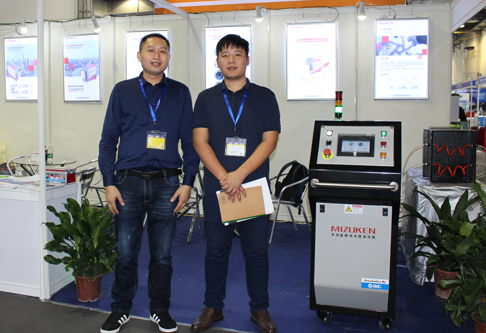 左為廣東水研總經理許澤路先生 模具素有“工業之母”的稱號,是壓鑄、注塑、擠出等工業生產的核心,直接影響到產品品質的優劣及生產效率的高低,維護和保養好模具,是企業急需重視的問題,是節省成本增加效益的關鍵。廣東水研智能設備有限公司是從事模具清洗行業的知名企業。在本屆展會上,其展示的多功能模具水路清洗機,專為解決模具工作中易沉積水垢、銹蝕、淤泥與水藻等問題。 據介紹,在壓鑄、注塑生產過程中,模具冷卻水路易沉積水垢、銹蝕、淤泥與水藻等,使冷卻水路截面變小,冷卻通道變窄,大大降低冷卻液與模具直接的熱交換率,嚴重影響冷卻效果,使模具產品成型品質不穩定,不良率增加,生產效率降低,增加企業生產成本。