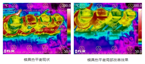 ![]() 模溫控制分區(qū)預(yù)熱示意圖 在壓鑄生產(chǎn)工藝中,不平均或不適當(dāng)?shù)哪>邷囟冉?jīng)常會(huì)導(dǎo)致鑄件尺寸不穩(wěn)定。在生產(chǎn)過程中頂出鑄件變形,產(chǎn)生熱壓力、黏模、表面凹陷、內(nèi)縮孔及熱泡等缺陷。模溫差異較大時(shí),對(duì)生產(chǎn)周期中的變數(shù),如填充時(shí)間、冷卻時(shí)間及噴涂時(shí)間等都會(huì)產(chǎn)生不同程度的影響。另外,模具的壽命亦會(huì)因受到過冷過熱的沖擊而導(dǎo)至昂貴鋼材產(chǎn)生熱裂等問題。