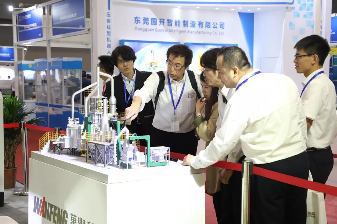 ![]() 11月26日,為期四天的“國際(深圳)鑄業(yè)展”在深圳國際會展中心(寶安新館)隆重開幕。萬豐科技作為國際領先的鑄造裝備及自動化系統(tǒng)生產(chǎn)服務商精彩亮相9號館9L21展位,推出重力鑄造機器人澆注單元、鋁錠鋁屑兼用爐、傾轉(zhuǎn)式震砂機、工業(yè)金屬3D模具打印技術等,展示萬豐在鑄造熱加工領域全產(chǎn)品線設備研發(fā)設計、系統(tǒng)集成等方面的最新成果和品牌實力。 低壓和重力鑄造向來是萬豐的優(yōu)勢產(chǎn)品,此次參展的由大齒輪和小齒輪重力鑄造機組成的機器人鑄造澆注單元是萬豐在國內(nèi)的首創(chuàng)產(chǎn)品,引領重力鑄造機轉(zhuǎn)型升級方向。設備采用伺服控制技術,翻轉(zhuǎn)過程無級變速,翻轉(zhuǎn)平穩(wěn)、定位精準。澆鑄系統(tǒng)配合工業(yè)機器人和滑移平臺,可實現(xiàn)多機聯(lián)動,自動澆注、取件,能有效降低人工,解決行業(yè)痛點。