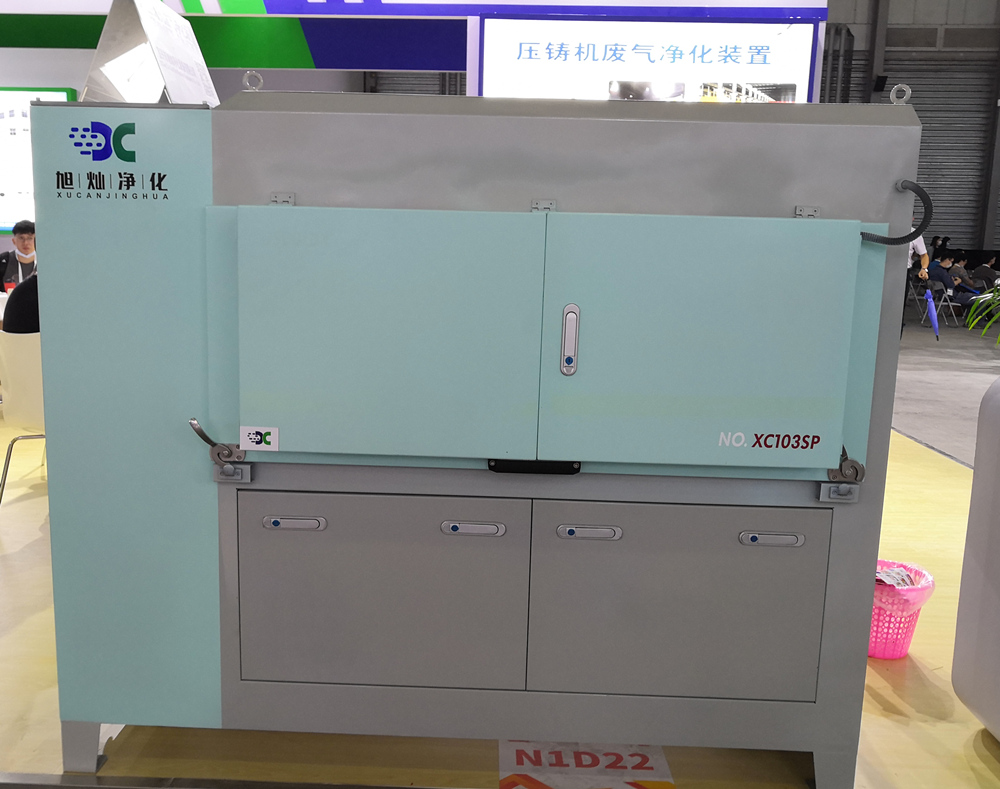 壓鑄機廢氣凈化裝置 據介紹,宜興旭燦本次展示的兩款設備,可全面助力壓鑄廠實現環保生產。其中,壓鑄機廢氣凈化裝置,系經過多次技術升級和設計優化的新一代機型。該設備綜合性能全面提升,凈化效果好,排放濃度<1mg/m3;智能化清洗機構,可自動清洗;煙罩移動齒輪條傳動,動作平穩,安全可靠;防護安全性能高;煙罩外殼鈑金模塊化專利設計,美觀大方。值得一提的是,運營成本低,低功率大風量離心風機,所有過濾單元均可清洗,無耗材。