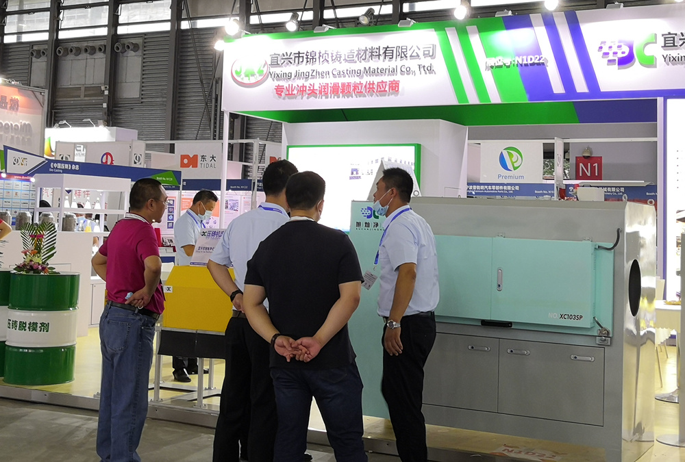 旭燦壓鑄機廢氣凈化裝置在客戶中應用 本屆展會,宜興市旭燦自動化設備有限公司與兄弟公司宜興市錦楨鑄造材料有限公司聯合參展。宜興錦楨主要展示其高性能壓鑄類耗材產品,包括沖頭顆粒、脫模劑、陶瓷湯勺、陶瓷沖頭等。