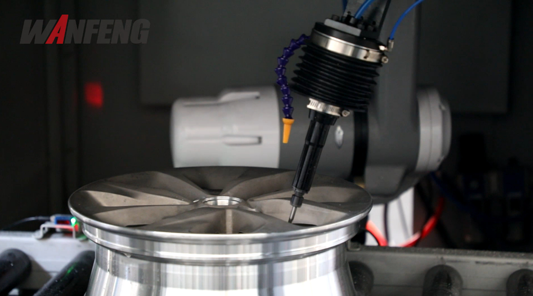設備適用于副車架、電池包等大型薄壁件的鑄造成型,助力實現汽車零部件的輕量化。設備采用高速節能液壓控制系統,擁有模具合攏檢測技術和抽負壓控制技術,掌握成熟的冷卻、充型工藝,設備運行精準控制。并采用的公司自主研發的管理系統,具有自動識別、故障判定提醒等功能,實現簡易操作,奠定智能鑄造基礎。 鋁輪轂機器人去毛刺生產線