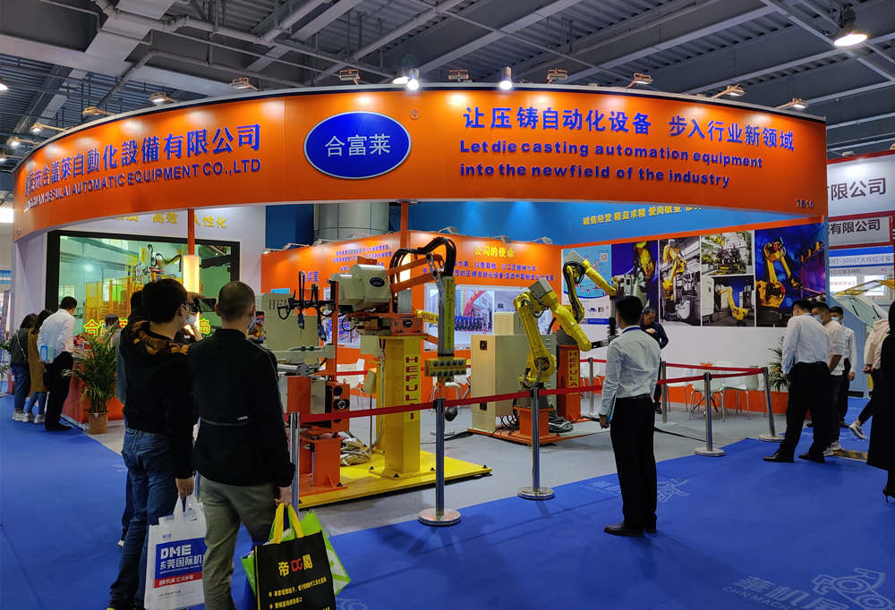 ![]() 2021年12月9日-13日,為期四天的“2021 DME東莞壓鑄展”在東莞厚街廣東現代國際會展中心勝利舉辦。得益于國家在疫情防控方面的卓越表現,中國經濟強勁復蘇,加之外貿需求的爆發(fā)式增長,在國內、國際雙循環(huán)帶動下,制造業(yè)一片欣欣向榮。壓鑄行業(yè)發(fā)展勢頭同樣迅猛,激發(fā)了產業(yè)鏈上下游企業(yè)、專業(yè)觀眾參展參會的熱情。 東莞市合富萊自動化設備有限公司(“東莞合富萊”)系行業(yè)領先的壓鑄自動化設備及生產解決方案提供商,為客戶提供鋅、鋁合金壓鑄機械手(給湯機、噴霧機、取件機)和機器人壓鑄島解決方案。東莞合富萊今年為第二次“亮相”DME東莞壓鑄展,落座于7號館7B10展位。近百平米的碩大展臺,展示多套技術先進的壓鑄自動化設備,以及噴霧、取件機器人壓鑄島。