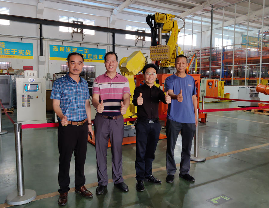 友盟鑫科技黃忠友董事長一行參觀合富萊自動化生產車間 友盟鑫科技董事長黃忠友先生表示:“很高興今天在這里和合富萊公司達成戰略合作協議,經過一段時間的深入交流和了解,合富萊公司向我們展示了在技術、質量、服務方面的綜合實力及優勢。友盟鑫是一家專注于鎂合金、鋁合金壓鑄零部件研發制造的企業,在國內率先把鋁鎂合金材料從航天領域引用到LED顯示屏箱體制造領域;和常規壓鑄箱體相比較,鋁鎂合金箱體除了具備壓鑄鋁箱體的傳統優點外,同時又具備更輕散熱更佳、屏蔽性更優、強度更好等優點。目前,友盟鑫公司掌握了多項鎂合金箱體制造的核心技術,申請了20余國家專利;其中鋁鎂合金變形精度控制技術、鋁鎂合金防氧化技術,填補國內領域的技術空白。” 黃忠友先生接著說:“此次采購的設備將投放于我們的重慶生產基地。在過去十多年我們深耕華南市場,主要為LED、消費電子等行業用戶提供壓鑄件產品。去年我們謀劃實施新的企業發展、業務多元化的戰略,在重慶銅梁購買了50畝工業用地,拓展西南市場,并計劃將產品線延伸至汽車零部件、通訊、軍工等領域。這次和合富萊公司的簽約是雙方合作的開始,期待未來彼此有更多更深入的合作。” 合富萊自動化董事長楊炳榮先生表示:“很榮幸獲得行業知名鎂合金壓鑄燈箱制造商—友盟鑫科技公司的認可并且雙方達成戰略合作伙伴,接下來我們必將上下一心,按時并保質保量交付該批次壓鑄自動化設備。合富萊公司專業從事壓鑄給湯機、噴霧機、取件機等‘壓鑄三手’及壓鑄島機器人自動化的研發與制造,在壓鑄自動化領域擁有16年技術與經驗的沉淀,壓鑄自動化產品以‘穩定、高效、耐用’著稱,在行業擁有良好的口碑和知名度。期待通過本次合作,雙方之間能攜手進步,共創雙贏。”