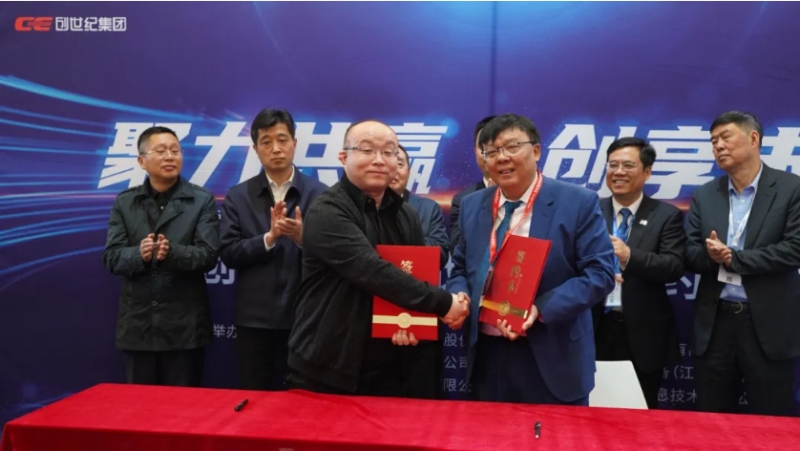 在4月9日舉行的戰略合作簽約儀式上,創世紀集團與廣州市霏鴻智能裝備有限公司、大前機床(江蘇)有限公司、安慶精研精密機械科技有限公司、喬那科數控裝備(江蘇)有限公司、深圳聚維新信息技術有限公司和赫勒精機(江蘇)有限公司六家代表企業分別簽署了戰略合作協議,與廣東中泰工業科技股份有限公司、大前機床(江蘇) 有限公司共同簽署了三方戰略合作協議。