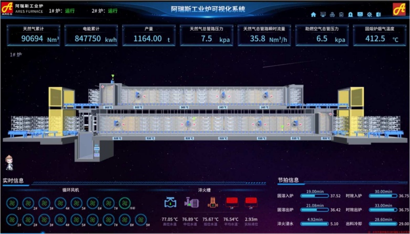 阿瑞斯工業(yè)爐開(kāi)發(fā)的可視化&數(shù)字孿生系統(tǒng) 阿瑞斯工業(yè)爐還獨(dú)立開(kāi)發(fā)了可視化&數(shù)字孿生系統(tǒng),這一系統(tǒng)獨(dú)立于設(shè)備操作系統(tǒng)之外,為生產(chǎn)管理者提供了設(shè)備狀態(tài)分析、全面的生產(chǎn)數(shù)據(jù)統(tǒng)計(jì)和能耗統(tǒng)計(jì),從而更深入地挖掘設(shè)備潛能,并實(shí)施成本節(jié)約措施。此外,軟件內(nèi)嵌的數(shù)學(xué)模型還能為新工藝的開(kāi)發(fā)提供有力支持。 通過(guò)這些技術(shù)創(chuàng)新和優(yōu)化設(shè)計(jì),阿瑞斯工業(yè)爐不僅提升了設(shè)備性能,還進(jìn)一步鞏固了其在鋁合金熱處理行業(yè)的領(lǐng)先地位。 備受矚目的“2024上海國(guó)際壓鑄展”將于7月10-12日在上海新國(guó)際博覽中心盛大舉行。屆時(shí),阿瑞斯工業(yè)爐將力推鋁合金鑄件熱處理爐創(chuàng)新解決方案。展位號(hào):N2C26。 聯(lián)系方式