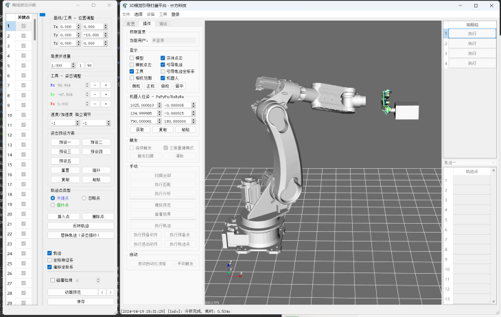 軟件界面圖片 免人工示教功能是VGS去毛刺智能引導系統的主要亮點之一,產品導入時間縮短至30分鐘以內。相比傳統人工示教模式動輒需要數天時間,大大提高了生產效率。同時,系統采用模塊化操作界面,操作人員無需專業背景知識即可快速上手,降低了操作難度和培訓成本。其引導精度可達±0.1mm(部分型號±0.3mm),確保了加工質量的一致性和穩定性。 在數字化動作仿真方面,VGS去毛刺智能引導系統也表現出色。操作人員可以通過軟件界面直觀地查看加工過程和軌跡,便于進行優化和調整。這種可視化操作不僅提高了操作的便捷性,還確保了去毛刺打磨過程的一致性和可控性。 此外,VGS系統還支持多種刀具和多個品牌機械手(機器人)、CNC數控設備類型,能夠與現有生產線無縫集成。針對去毛刺方式或應用場景,VGS去毛刺智能引導系統有針對性地開發了VGS-M24、VGS-F24、VGS-C24、VGS-SW等多款專用系統,以滿足不同客戶的多樣化需求。
