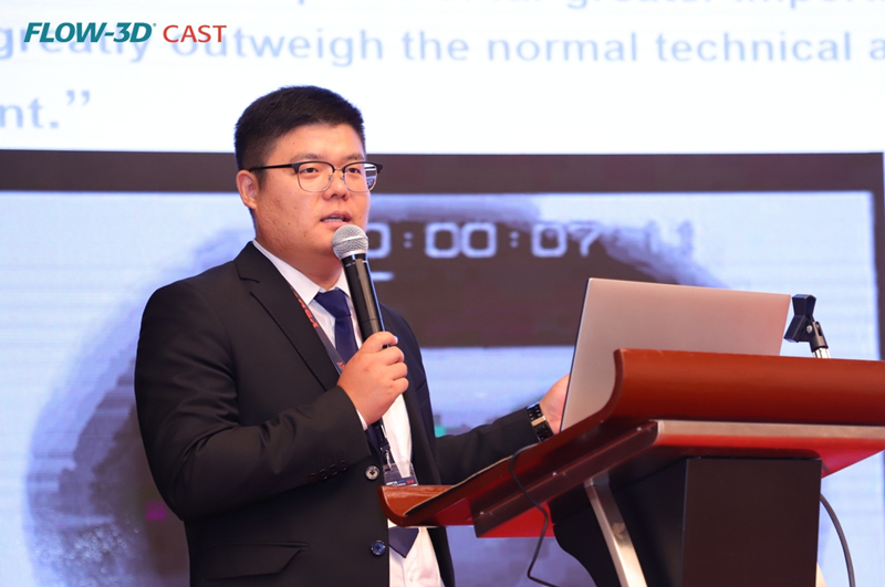華晨寶馬汽車有限公司的孫晶瑩 溫州瑞明工業股份有限公司的韓瑞雷先生以《FLOW-3D Cast 在鋁合金壓鑄變速箱產品開發中的應用》為題作報告。他表示,FLOW-3D鑄造模擬仿真軟件,能為工藝設計提供科學的理論依據,可實現數據多樣驗證化,減少工藝偏差值;能提供精確的模具設計方向及結構設計,降低設計偏差值及試制次數,提升模具質量及使用壽命。