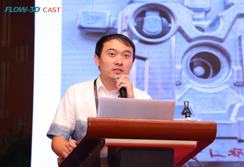 華域皮爾博格有色零部件有限公司的劉緒周先生 帕盛博(蘇州)軟件科技有限公司的渠立歡先生以《FLOW-3D軟件在壓鑄方面的應用》,分享了“氣孔粒子追蹤”、“產量提高”兩個FLOW-3D軟件的應用案例。