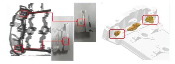 c.總變量與總目標變化趨勢圖片 圖5 模擬結果 3、實際驗證 根據優化后的澆注方案以及工藝參數進行實際生產,對壓鑄出產品做內部質量檢測,檢測結果顯示產品壁厚位置縮孔得到改善,如圖6所示。實踐結果表明通過采用改善后的壓射方案并配合最佳工藝參數,解決了實際中產品出現的缺陷。