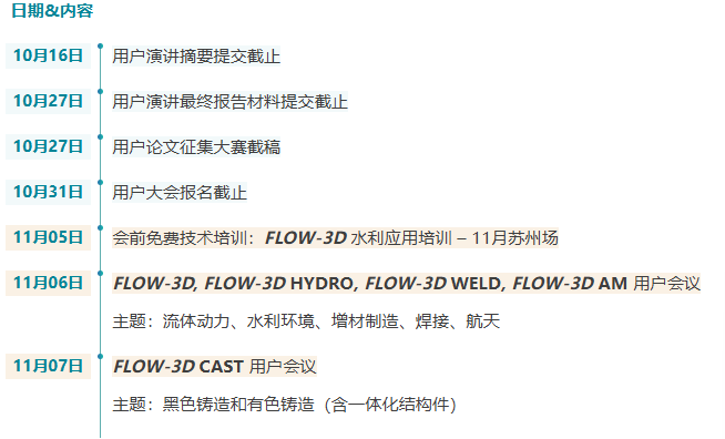 邀請函 INVITATION 2025 FLOW-3D 中國用戶大會將于11月6 - 7日在蘇州中茵皇冠假日酒店舉行。用戶大會是 FLOW-3D 用戶年度相聚和分享交流信息的重要平臺。會議由 FLOW-3D 美國總部和中國團隊為用戶帶來最新的產品發展方向,產品應用以及新功能等內容,以及 FLOW-3D 軟件用戶群在各領域的應用成果和軟件使用經驗分享等。