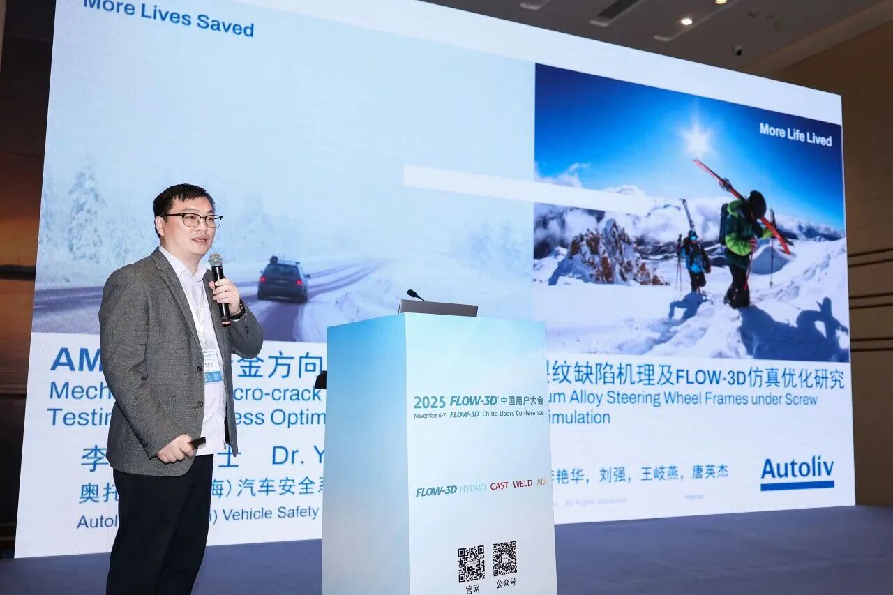 奧托立夫(上海)汽車安全系統研發有限公司李艷華博士,以《AM50A鎂合金方向盤骨架扭矩試驗微裂紋缺陷機理及FLOW-3D仿真優化研究》為題作報告;